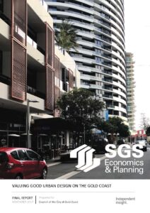 A consultancy with Gold Coast City Council resulted in the report Valuing Good Urban Design on the Gold Coast, which includes a substantial account of methodology and the justification for urban design: